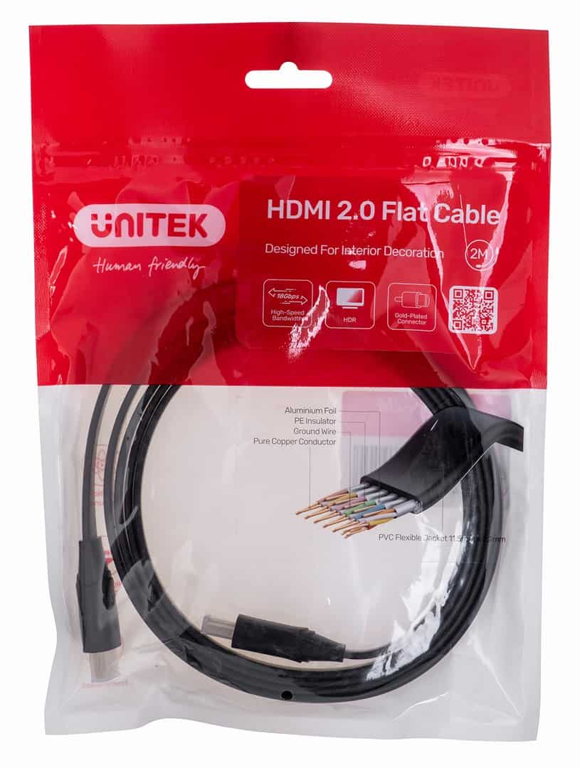 UNITEK — UNITEK KABEL HDMI 2.0 4K60HZ, PŁASKI, 2M, C11063BK-2M