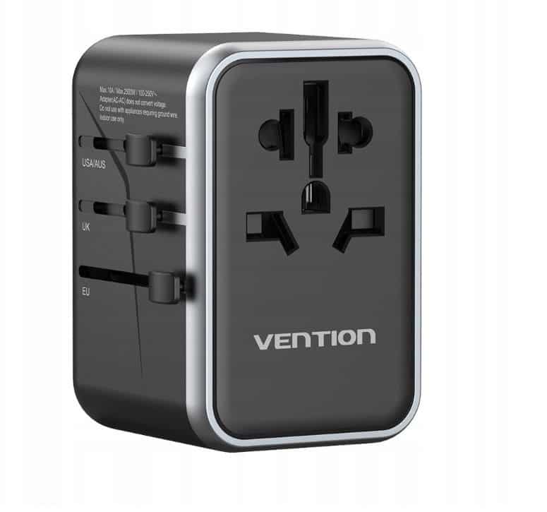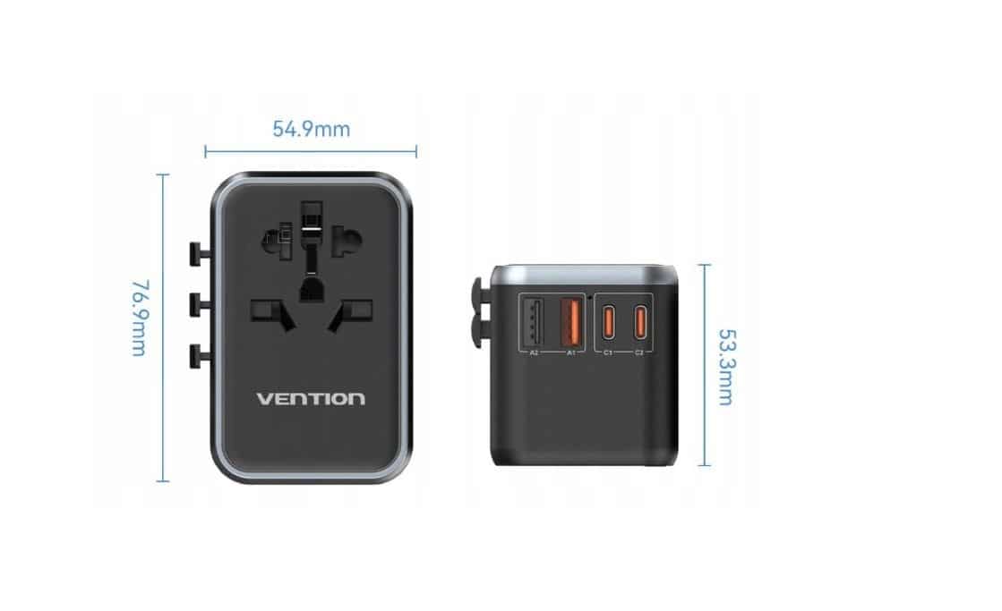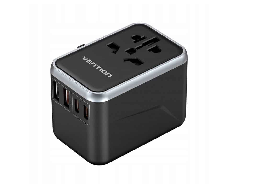Vention — Uniwersalny adapter podróżny z ładowarką Vention 65W GaN 2x USB-A 2x USB-C czarny