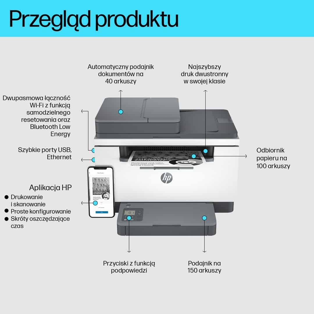 | Wymienne kasety | HP 135A – wkład LaserJet z czarnym tonerem, W1350A (ok. 1100 str.), HP 135X – wkład LaserJet z czarnym tonerem, W1350X (ok. 2400 str.) |