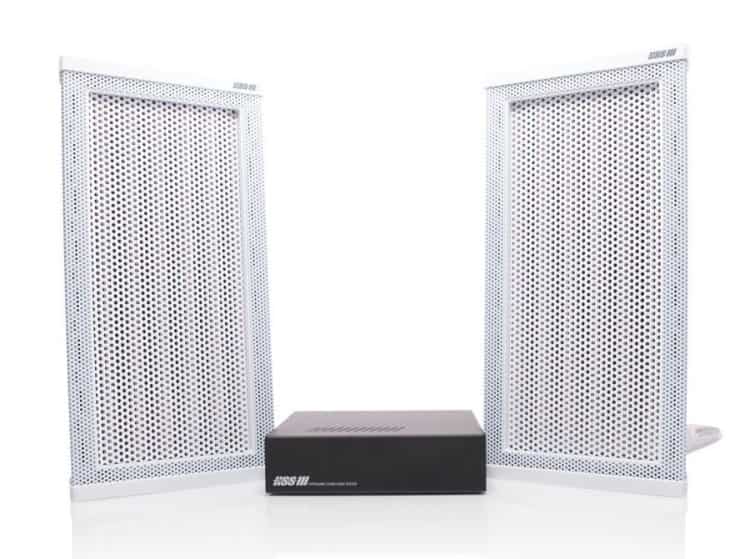 waves system — WAVES SYSTEM GŁOŚNIKI KIERUNKOWE ZE WZMACNIACZEM ZESTAW STEREO: 2X HSS3000EW + WZMACNIACZ + UCHWYTY DO GŁOŚNIKÓW