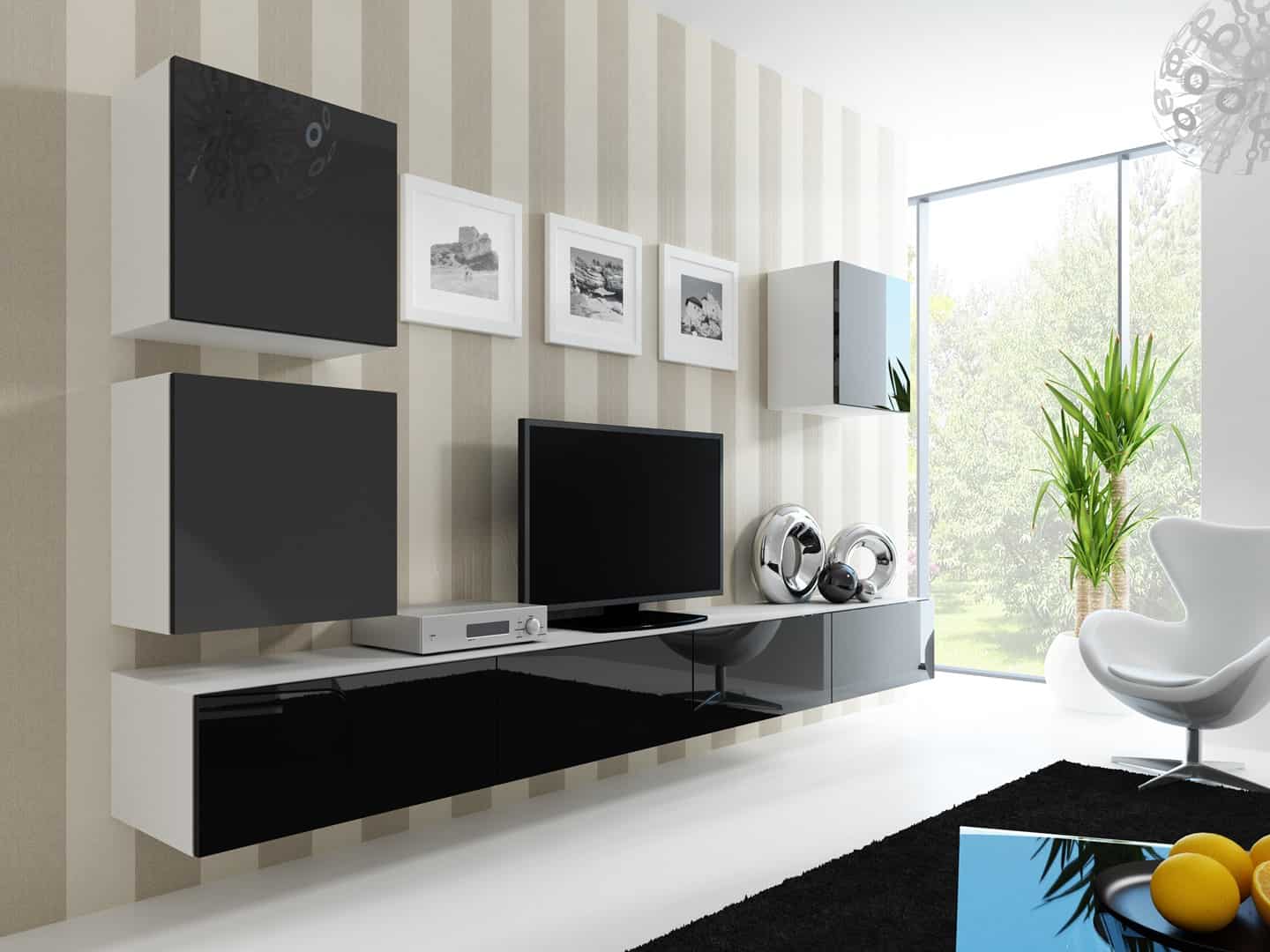Cama MEBLE — Witryna VIGO pełna’180′ 180/40/30 biały/czarny poł