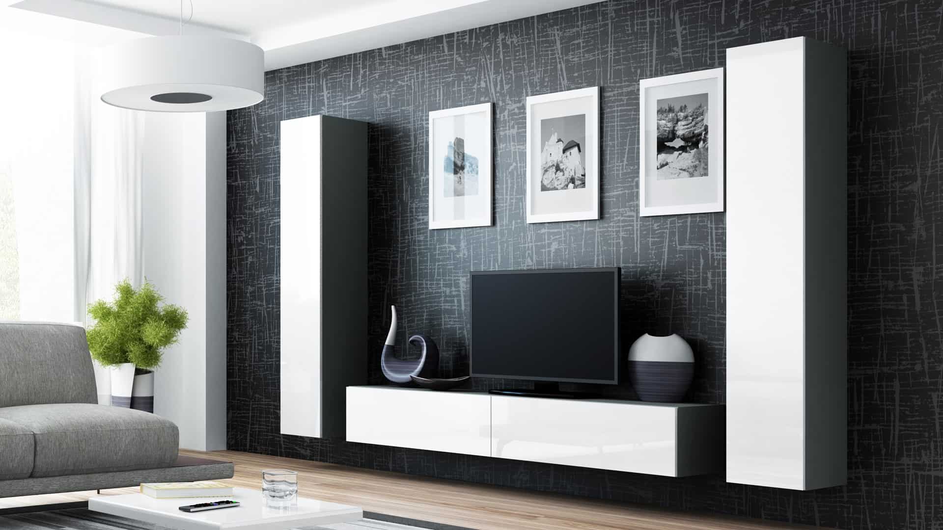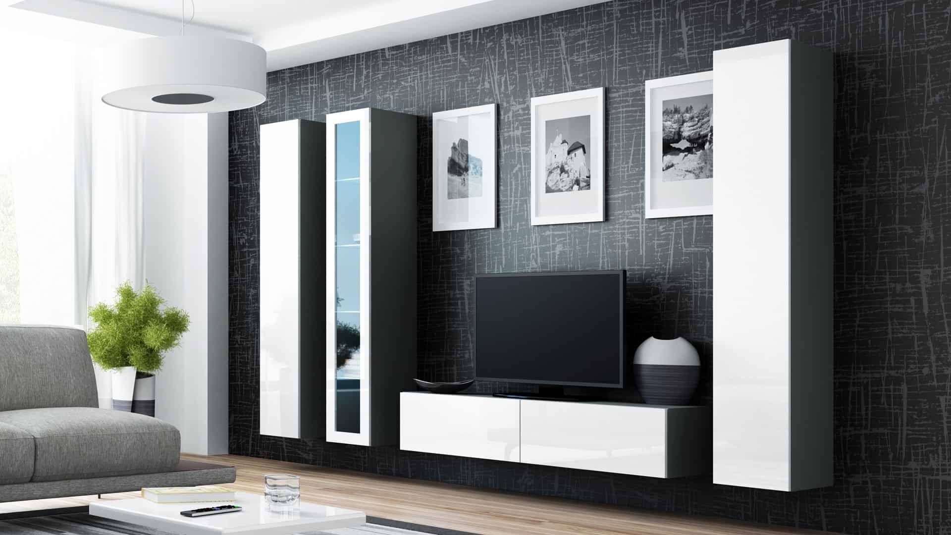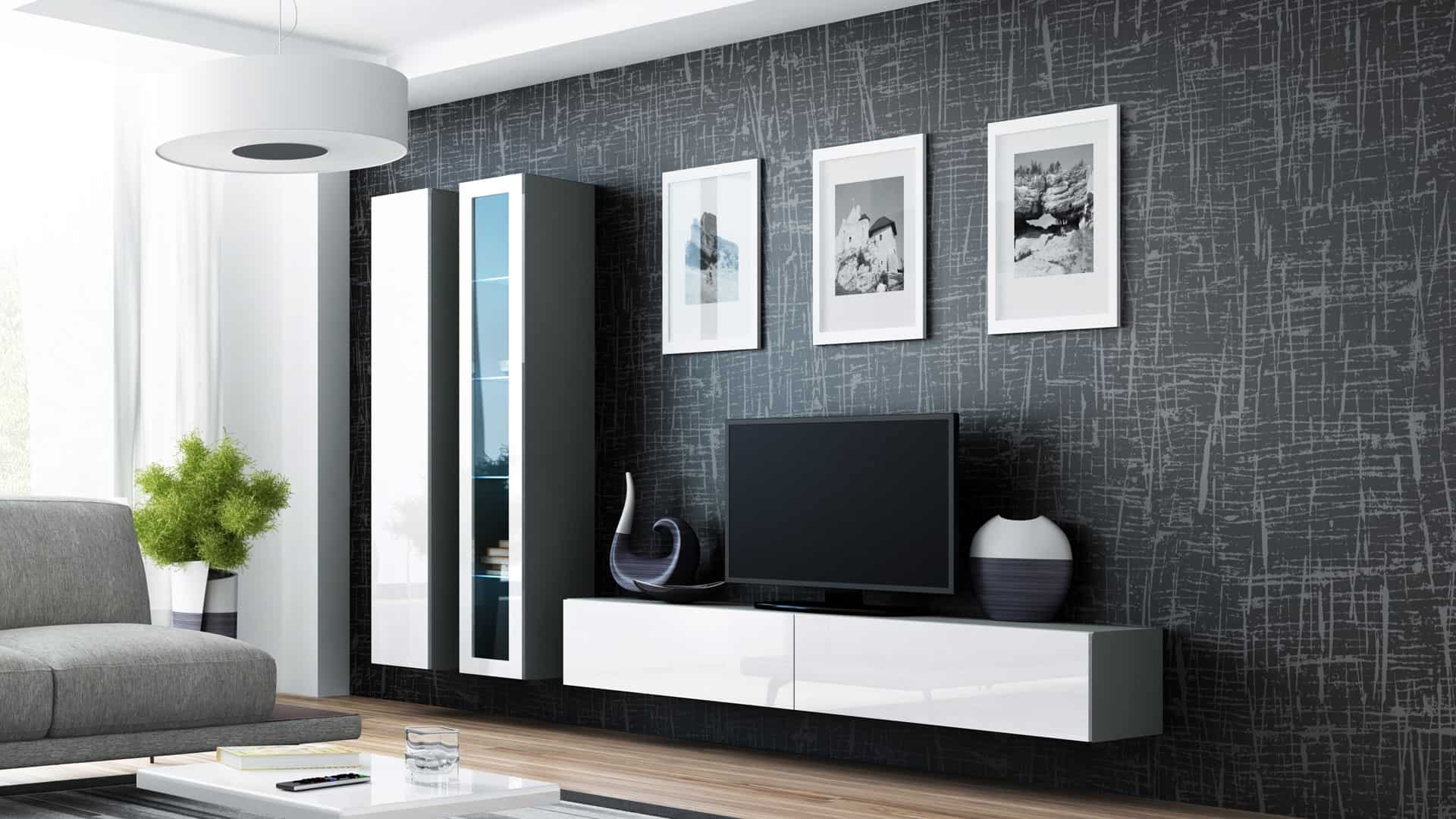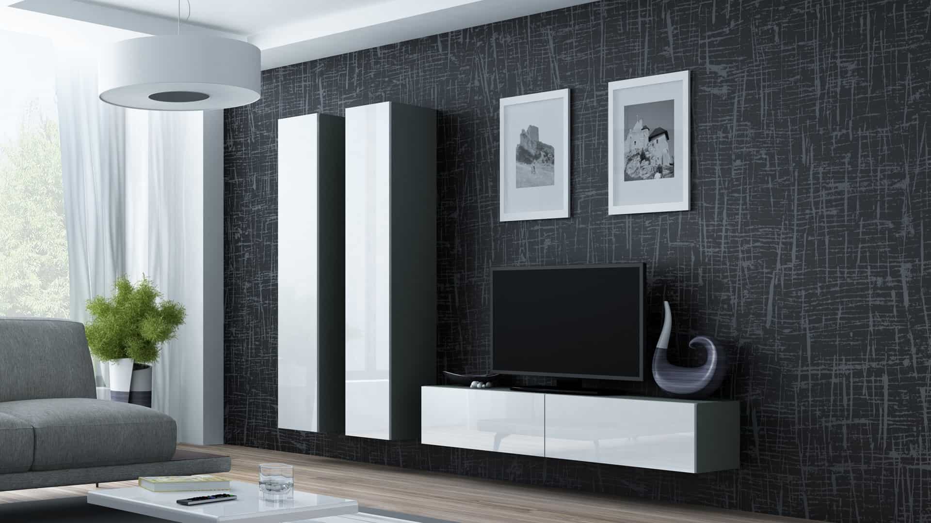 Cama MEBLE — Witryna VIGO pełna’180′ 180/40/30 szary/biały poł