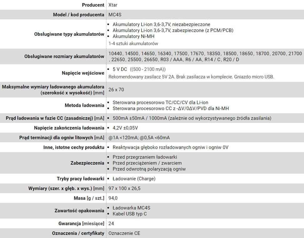 XTAR — XTAR ŁADOWARKA DO AKUMULATORÓW CYLINDRYCZNYCH LI-ION MC4S