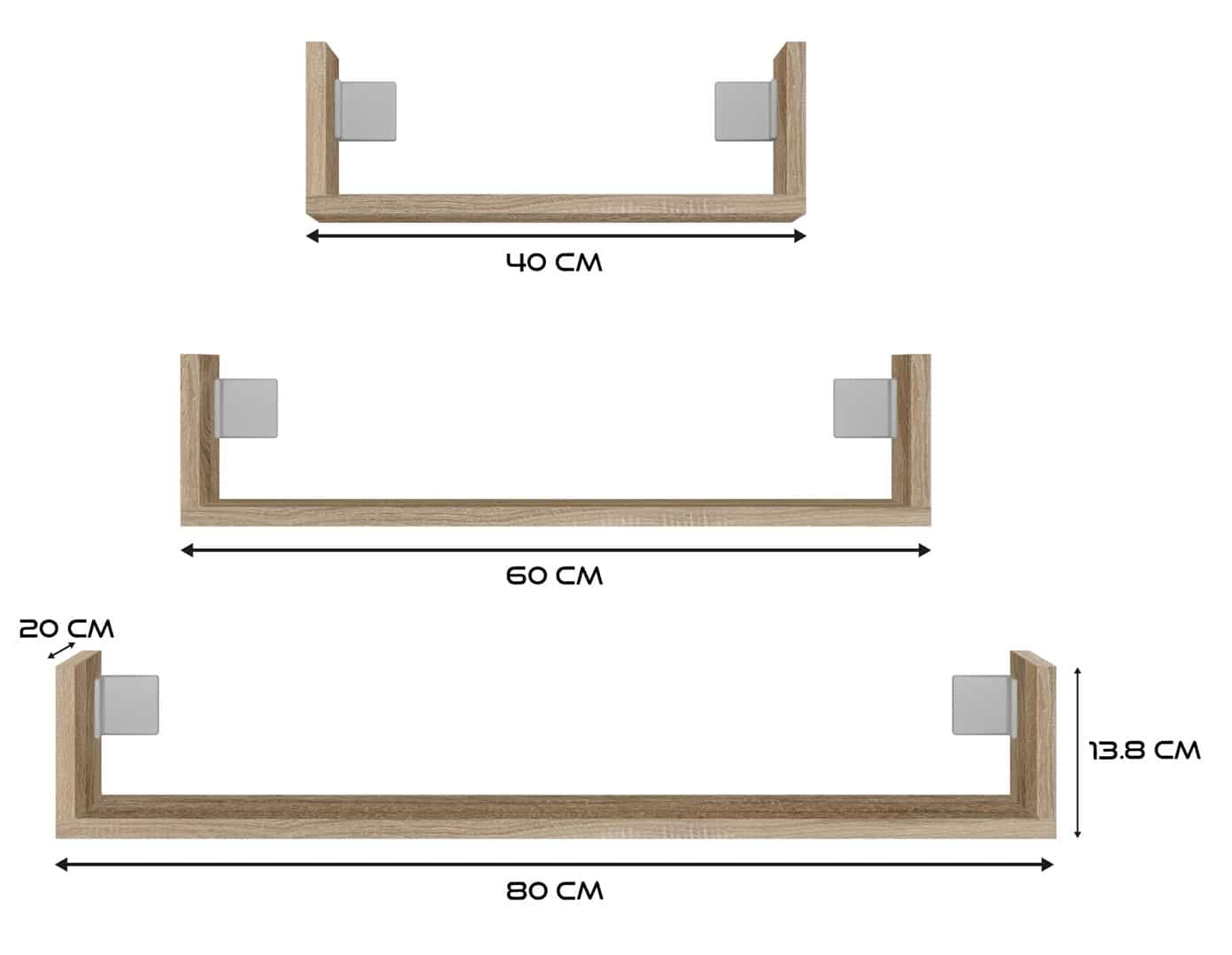 TOP E SHOP — Zestaw 3 x półka wisząca MOBI 3P 80x20xH14 sonoma